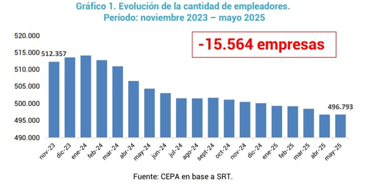 El informe del Centro de Economía Política Argentina (CEPA) refleja el retroceso en la cantidad de unidades productivas registradas, que pasaron de 512.357 a 496.793.