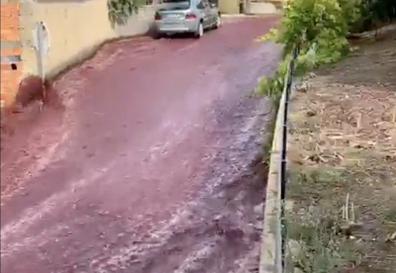 En los videos -que se hicieron virales en las redes el domingo pasado- La foto describe claramente cómo el vino desciende por las calles del pueblo Sao Lourenço do Bairro, donde viven unas 2.400 personas.