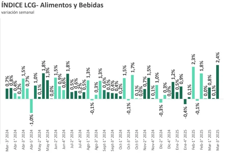 De acuerdo a un informe de la consultora LCG al que pudo acceder El Destape, la suba de precios de los alimentos promedió 2,4% en la tercera semana del mes, acelerando 2,3 puntos porcentuales respecto a la semana anterior. Se trata del aumento más grande desde el registro de la primera semana de marzo de 2024, cuando los productos que componen la canasta básica se habían acelerado un 3,6%.
