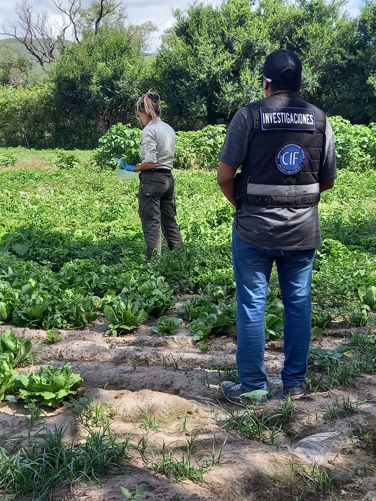 El fiscal Jovanovics consideró crucial la recolección de muestras de las hortalizas producidas en la finca para verificar la presencia de virus, bacterias o parásitos provenientes de las aguas contaminadas, que podrían afectar la salud de la población, la cual fue llevada adelante el día de hoy, estando a cargo de la Unidad Especial de Investigaciones del Cuerpo de Investigadores Fiscales. En el lugar, los ingenieros Leonor Barrenechea y Joel Medina del Laboratorio del CIF, realizaron el levantamiento de muestras de vegetales como lechuga, brócoli, zanahoria y perejil.