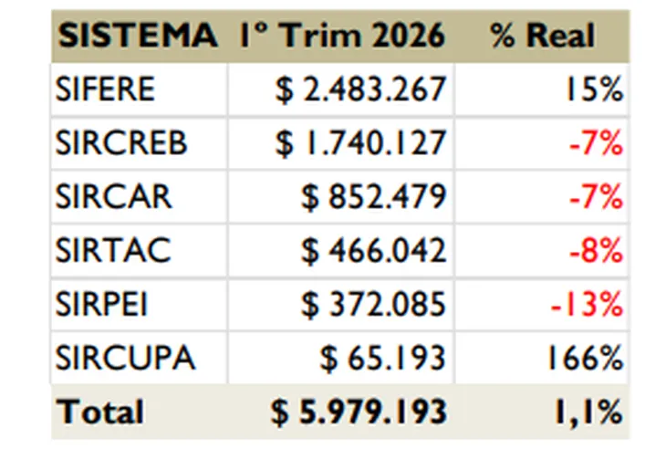 El primero de ellos es el SIRCREB, el sistema que genera anticipos automáticos cuando una cuenta bancaria de un contribuyente registra un ingreso de dinero. Este tuvo en el primer trimestre una baja real del 7%.