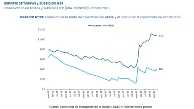 Según el Observatorio de Tarifas y Subsidios IIEP a cargo de la UBA-CONICET, entre las principales ciudades del país se observan servicios de transporte con tarifas por encima de los $ 1.000, como es el caso de Bariloche ($ 1.613), Santa Fe ($ 1.440), Resistencia ($ 1.300), Corrientes ($ 1.290), Rosario ($ 1.200), Córdoba ($ 1.200), Mar del Plata ($ 1.180), Formosa ($ 1.150), Tandil ($ 1.147) y Comodoro Rivadavia ($ 1.114), por citar algunos casos. Por su parte, las tarifas más bajas del país se encuentran en San Luis ($ 750), Santa Rosa ($ 715), San Juan ($ 560) y La Rioja ($ 450). Siempre excluyendo al AMBA.