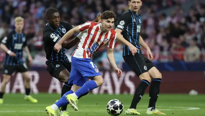 Si bien Brujas supo ponerlo en aprietos y empatar transitoriamente el desquite, el rápido gol de Johnny Cardoso rompió el partido en el complemento. El noruego Alexander Sorloth se llevó los flashes marcando hat-trick para los de Simeone.
