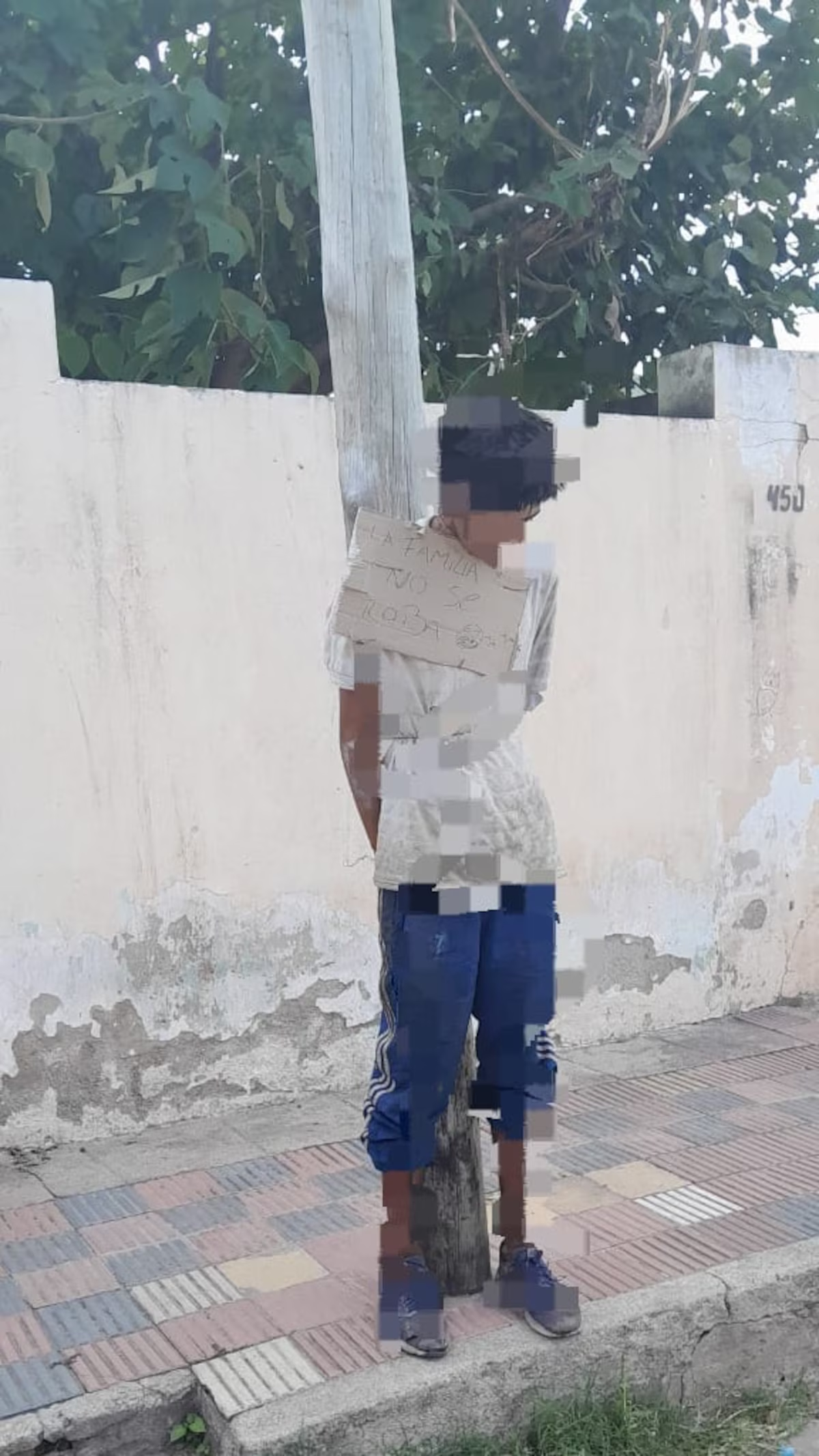 Un joven de 21 años apareció atado hoy lunes a un poste de alumbrado público con un cartel colgado en su cuello que decía “A la familia no se le roba”. El hecho se registró cerca de las 7 de la mañana, en el barrio Maldonado de la ciudad de Córdoba.