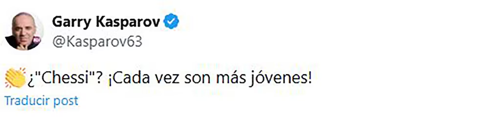 Como ya había ocurrido en el pasado, el histórico campeón mundial, considerado uno de los mejores ajedrecistas de todos los tiempos, utilizó sus redes sociales para hacer un comentario tan breve como contundente sobre el argentino de 12 años. “Chessi”, escribió el mítico jugador azerbaiyano de 62 años en su perfil de X (antes Twitter) seguido por más de un millón de personas. La referencia es clara: mezcló la palabra ajedrez en inglés (Chess) y le sumó la “i” para darle la inconfundible asociación a Lionel Messi, el jugador rosarino que sigue marcando la historia del fútbol. Así puso otra vez en la voz pública un apodo que ya acompañaba la carrera de Fausti y que había sido utilizado por el propio Kasparov en 2024 luego que Oro se convirtiera en el maestro internacional más joven de la historia.