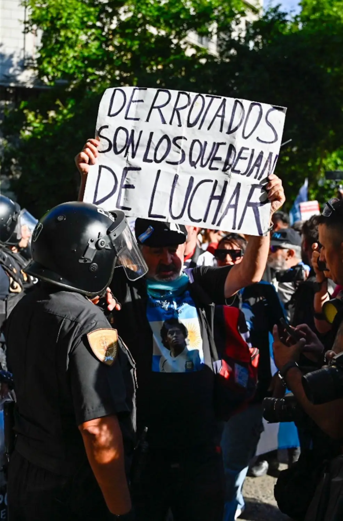 En esa línea, el jubilado de 75 años e hincha de Chacarita Juniors que suele estar presente en cada movilización advirtió por la presencia de «un grupo» que llegó para «hacer lío» en la Plaza del Congreso. «Nosotros los jubilados estamos de este lado. Este es un grupo que nunca lo vimos», dijo Carlos Alberto Dawlowfki a C5N.