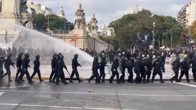 Cuando los manifestantes quisieron realizar un acto sobre la avenida Callao frente a la Secretaría de Trabajo, fueron reprimidos con gases, balas de gomas y camiones hidrantes para desalojarlos de la vía pública. Luego los trabajadores intentaron realizar el acto en la plaza de los dos Congresos, pero la agresión policial continuó.