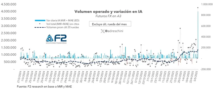«Los futuros se derritieron con un volumen inusualmente alto, esa es una de las razones que llevan a pensar que hubo intervención con el objeto de anclar expectativas», manifestó Andrés Reschini, de F2 Soluciones Financieras.