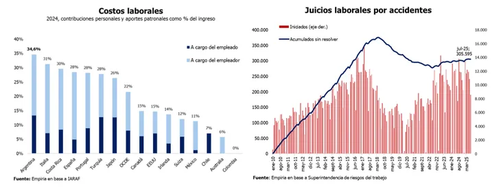Otra fuente de litigiosidad son los accidentes. Los juicios asociados crecieron hasta 2017, cayeron hasta 2022 y volvieron a crecer desde entonces, mientras que los accidentes efectivamente ocurridos muestran una caída continua desde 2010, señala Empiria. Hay más de 300 mil juicios sin resolver. Además, uno de cada cuatro juicios iniciados en el último año fue en PyMEs .