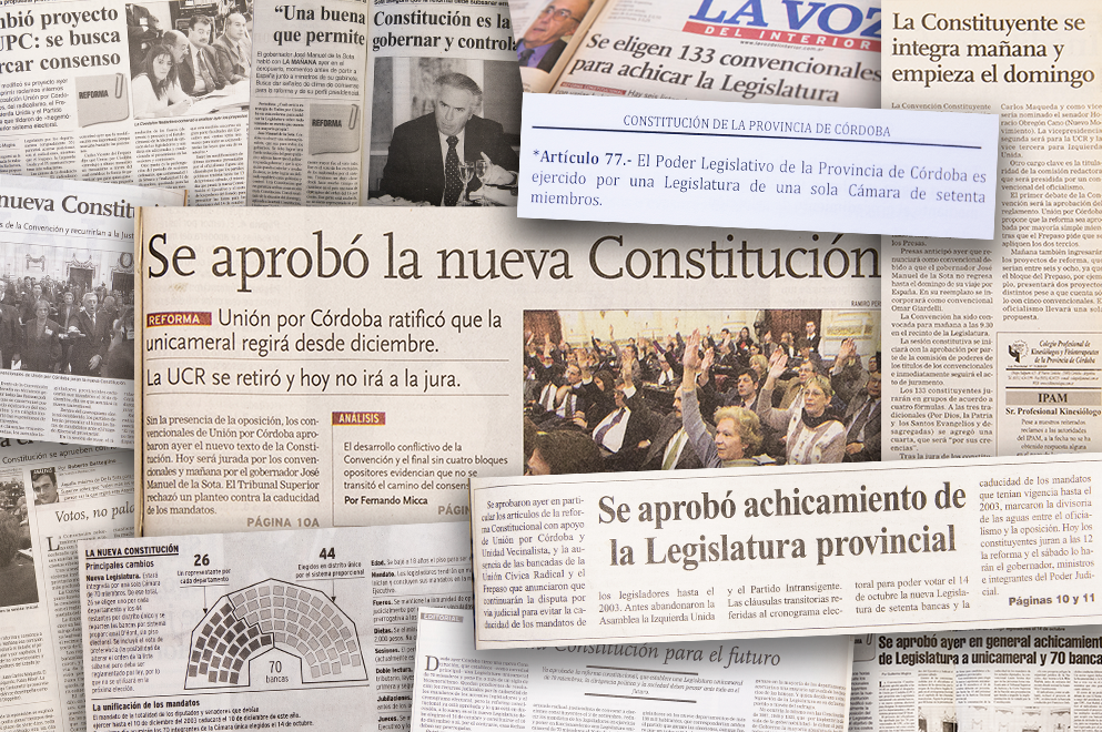 Aprobada la necesidad de la reforma, la Convención Constituyente tuvo en sus manos el debate, los acuerdos y la aprobación de las modificaciones que actualmente rigen a la Unicameral cordobesa.