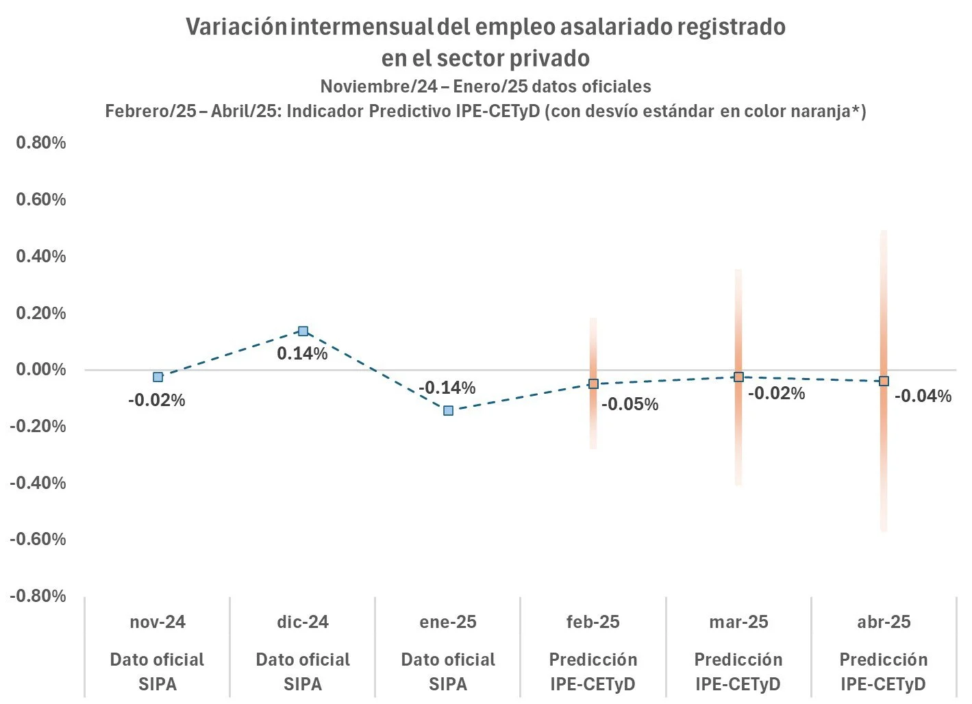 De acuerdo a lo estimado, el empleo asalariado registrado en el sector privado se contraería un 0,05% en febrero, un 0,02% en marzo y un 0,04% en abril. El dato se explica porque si bien la construcción dejó de derrumbarse, muestra un comportamiento errático, mientras que la industria sigue perdiendo empleo y representa el actor principal del entramado productivo.
