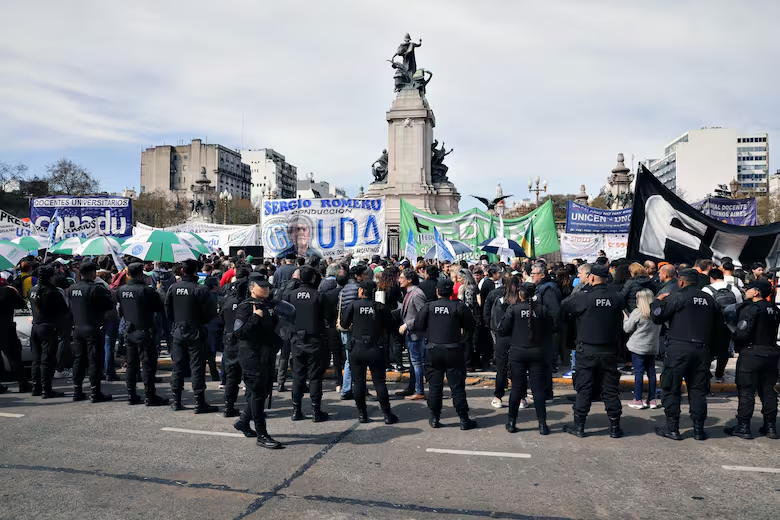 Pese a que en un principio la convocatoria pretendía ser masiva, sin embargo, resultó absorbida por la marcha que ayer se realizó por los jubilados, razón por la cual las columnas hoy presentes abarcaron la cabecera de la plaza hasta la altura del monumento “De los Dos Congresos”, en medio de un fuerte operativo de las fuerzas federales que bloquearon el corte del tránsito, donde no se registraron incidentes. “Tenemos que retomar el camino del 23 de abril porque obviamente que se viene el veto, al que no lo vamos a voltear con una sola movilización, sino con un plan de lucha de fondo para frenarles la mano”, concluyó Biasi.