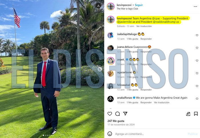 Marcelo Pocovi es un empresario engarzado en el corazón de La Libertad Avanza. Ex pareja de Zulemita Menem, con quien tuvo un hijo, Malek, supo ganar un lugar en la corte del presidente. Su hijo Kevin, acompañó a Javier Milei a Mar-a-Lago Club y a la CPAC, ocasión en la que nuestro presidente se entrevistó brevemente con Donald Trump.