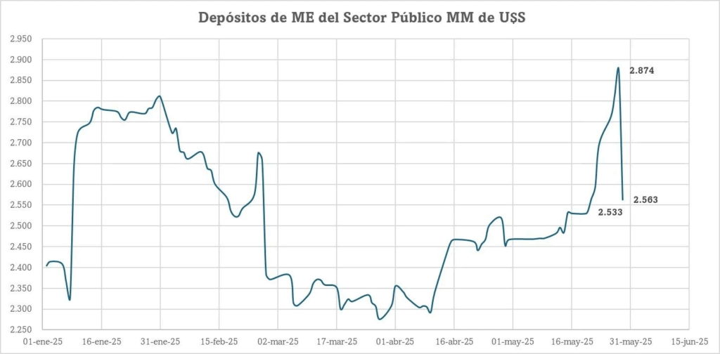 Mientras los depósitos en dólares del sector privado cayeron el jueves pasado otros 64 millones y acumularon en cuatro días un retroceso de 292 millones, también disminuyeron los depósitos del sector público por el pago de deuda de la Ciudad de Buenos Aires por 297 millones y de la provincia de Córdoba, por 18 millones, concretados este lunes.