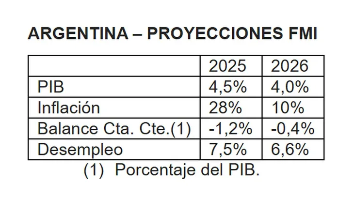 Para 2026 el Fondo también recortó la previsión de crecimiento para la Argentina, llevándola a 4%, medio punto menos que el pronóstico de julio.