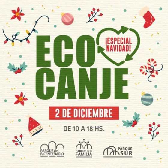 En los parques Sur, Bicentenario y de la Familia, el sábado 2 se realizará un ecocanje con productos navideños; la jornada se realizará desde las 10 hasta las 18.