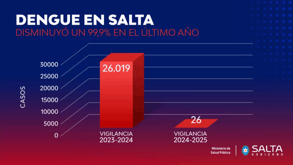 Cabe destacar que, en el periodo anterior, tampoco se habían registrado casos de fiebre amarilla ni de zika; sin embargo, se confirmaron 318 casos de chikungunya, la mayoría de ellos en el departamento San Martín. También se detectaron positivos en Capital, Rivadavia, Orán, Metán, General Güemes y La Viña.