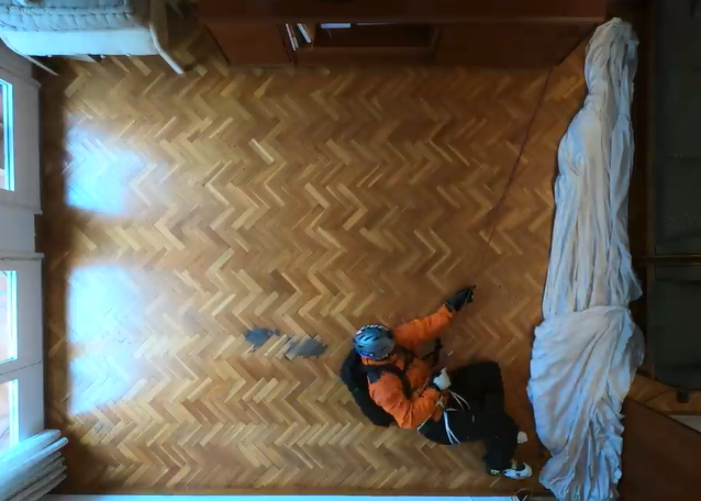 Confinado como todos los españoles, un barcelonés de 28 años se grabó a principios de abril del 2020 tratando de subir y después descender por una montaña de sábanas en el salón de su casa. En un video de 57 segundos, se ve a este esquiador aficionado despertarse en un saco de dormir en el salón, y después subir una montaña de sábanas blancas antes de descender simulando esquiar. Todo filmado con una cámara que había instalado en el techo del salón.