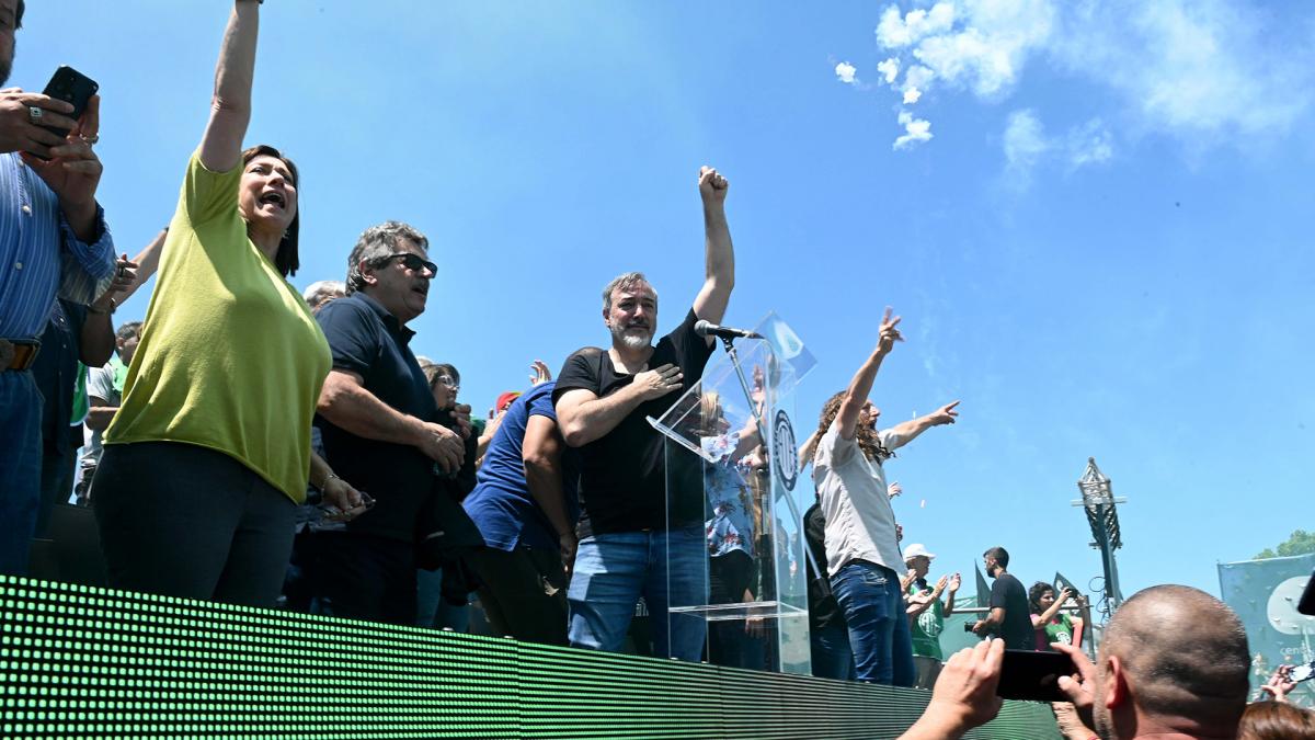 «Desde el Gobierno nos dicen ‘no la ven’, y nosotros creemos que sí, la estamos viendo, es en la calle y no nos vamos a detener. Vamos a profundizar nuestro plan de lucha hasta recuperar todos nuestros derechos», dijo Aguiar durante la protesta.