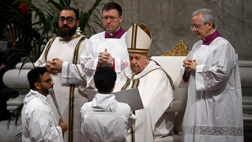 Miles de personas se congregaron en la Basílica de San Pedro para la celebración eucarística de casi dos horas de duración presidida por el pontífice y en la que estuvo, entre otras autoridades, el presidente Javier Milei, que fue buscado por muchos fieles para sacarse fotos.
