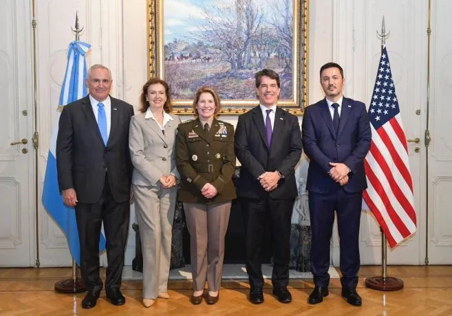 Sin la presencia del presidente libertario, el Jefe de Gabinete, Nicolás Posse, la Ministra de Relaciones Exteriores, Diana Mondino, el Ministro de Defensa, Luis Petri, el titular de la AFI, Silvestre Sivori y el Secretario de Estrategia Nacional, Jorge Antelo la recibieron. En la reunión también participó el embajador de Estados Unidos en la Argentina, Marc Stanley.