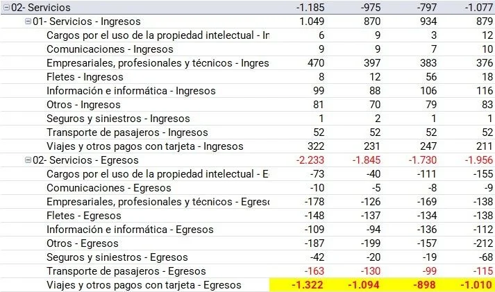 El mercado esperaba que aún en rojo, la cuenta corriente cambiaria mostrara mejores números, pero reflejó una Formación de Activos Externos de 2.513 millones de dólares y por Turismo, que salieron 1.010 millones de dólares pese a no tratarse de un mes considerado de temporada alta. El turismo, este año ya dejó un saldo neto negativo de 3.313 millones de dólares, producto de salidas por 4.324 millones e ingresos por 1.011 millones.