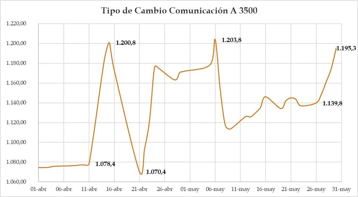 En mayo, la caída de las reservas internacionales (donde se reflejan la salida de dólares pero también la variación de las cotizaciones de los distintos activos, como el oro, las divisas o los títulos de la Reserva Federal) superó los 2.000 millones de dólares.