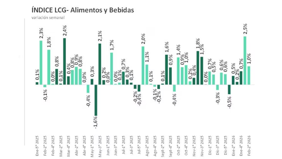 La medición de LCG, basada en relevamientos digitales de precios cada miércoles en cinco cadenas de supermercados, determinó que casi una quinta parte de la canasta monitoreada volvió a mostrar aumentos de precios, lo que evidencia incrementos extendidos, no concentrados en pocos rubros. Esto refuerza la preocupación por el IPC de febrero, que se conocerá en el 12 de marzo.