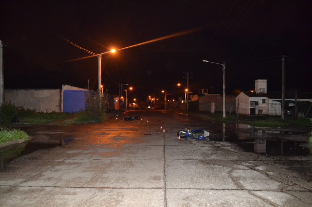 Anoche efectivos de la Comisaria N° 2 y peritos de Criminalística trabajaron para documentar el hecho y establecer la mecánica de un siniestro vial cercanías del ingreso a barrio Democracia, donde dos motocicletas colisionaron. Una persona perdió la vida.