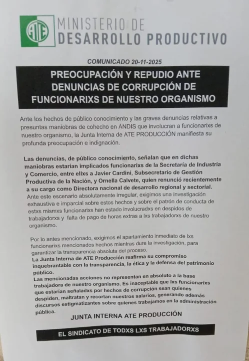 Cardini y Ornella Calvete fueron señalados en un comunicado de la Junta Interna de ATE Producción como “funcionarios que han estado involucrados en despidos de trabajadores y falta de pago de horas extra a trabajadores de nuestro organismo”. Desde el sindicato exigieron el apartamiento del ingeniero esta semana, horas antes de que Luis Caputo le pidiera su renuncia dejando al alfil de Santiago sin otra salida más que renunciar.