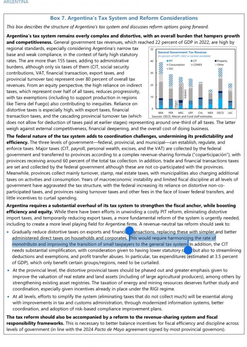 «Habría que ver el efecto en rentas generales», dijo a LPO un especialista en derecho tributario. «El fondo recomienda cosas pensando en países centrales donde no hay informalidad, pero cuando la receta aterriza en nuestros países a veces genera el efecto contrario al buscado», agregó.