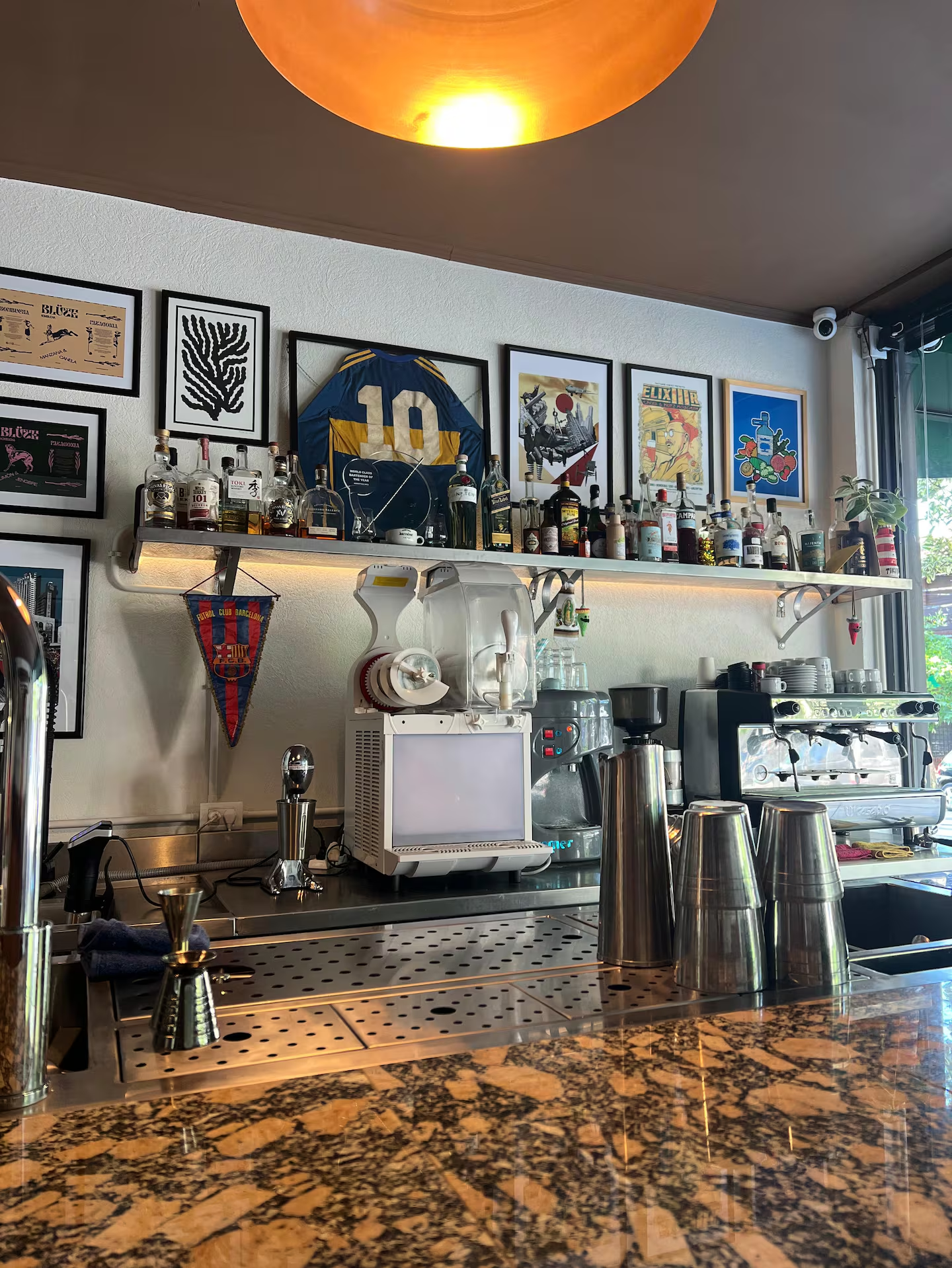 No son tantos los bares que en Argentina tienen disponibles (y liberados) a una fila de Daytona USA para todos los que vayan a tomarse un traguito. La intención de Fichín Bar es llenarlo todo de símbolos pop, como los cócteles con links a My Little Pony, Jumanji, The Mandalorian y los caramelos Sugus. La carta evoca a Blockbuster y la “Mesa 23”, la más cotizada, homenajea a Michael Jordan con casacas, pósters, figuras de Space Jam y hasta un aro de básquet.