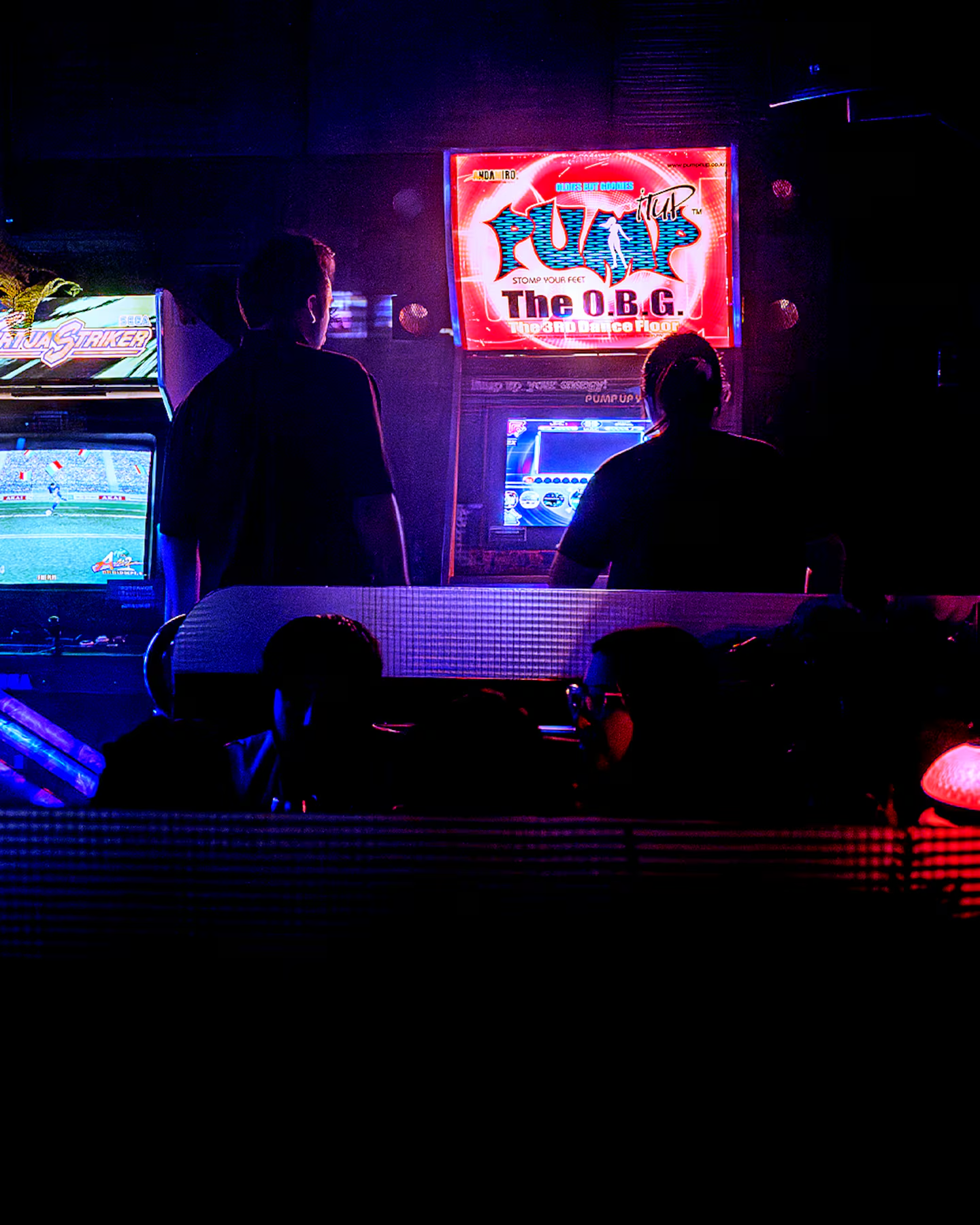Para morfar: hamburguesas (blend de carne espectacular, rico pan, guarniciones generosas), sánguches, pizzas, ensaladas y hasta postres. Y de frente, el neón que embolsa un código neo-retro y dice: “Welcome to Fabulous Mar del Plata”. Desde los parlantes, “Young Hearts Run Free” de Candi Staton y “I Will Survive” de Gloria Gaynor, pero no le hacen asco a Kendrick Lamar ni a la música electrónica moderna. Por ahí, las luces y estruendos del Virtua Striker y el sudor que recorre las frentes de los que pegan saltitos en el Pump It Up: The OBG.