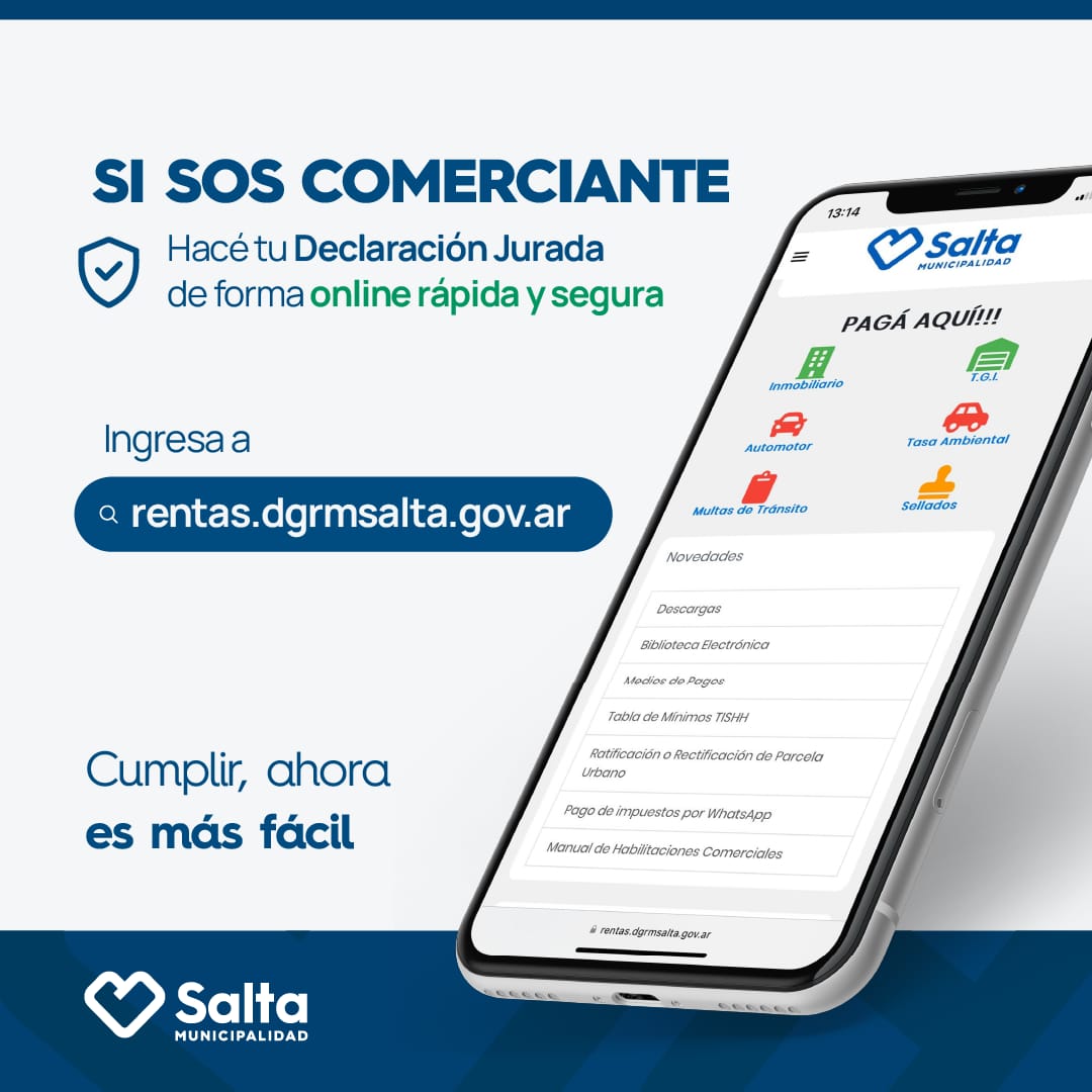 Si bien el nuevo servicio online ya se encuentra en uso, hasta el 31 de julio de este año se podrá presentar la DDJJ de forma manual. Ambas modalidades están disponibles para todos los comerciantes de la ciudad. Finalizado este período, sólo se podrán hacer las presentaciones de forma online. La presentación se realiza a través de la página de Rentas Municipal https://rentas.dgrmsalta.gov.ar/ con usuario y clave fiscal.