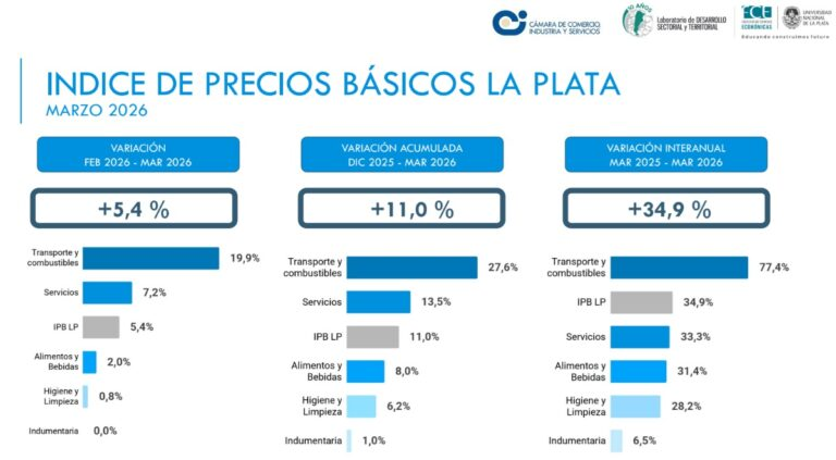 La inflación en la ciudad de La Plata marcó en marzo la estampida de precios más fuerte de los últimos tiempos, con una suba mensual del Índice de Precios Básicos del 5,4%, casi el doble que en febrero.