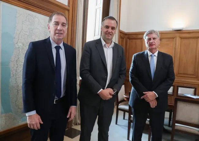 Diego Santilli, Manuel Adorni y el gobernador de La Pampa, Sergio Ziliotto.