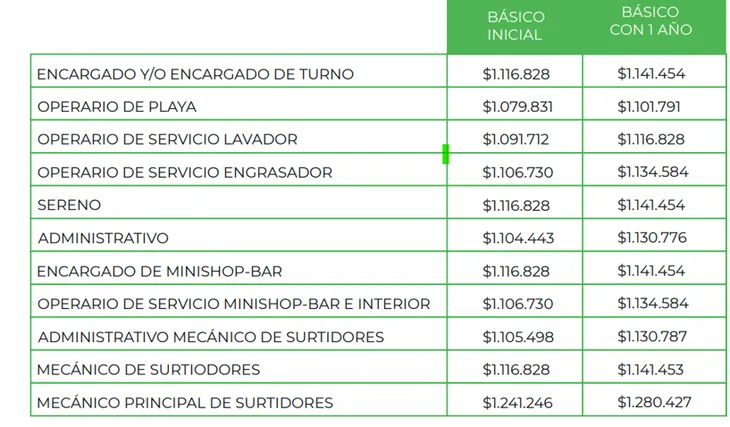Con esta actualización, el salario básico para los playeros en las principales cadenas del país se ubica en $1.350.389,10 mensuales. En tanto, los valores de referencia alcanzan los $51.938,04 por jornada y $6.492,26 por hora, de acuerdo con la modalidad de contratación.
