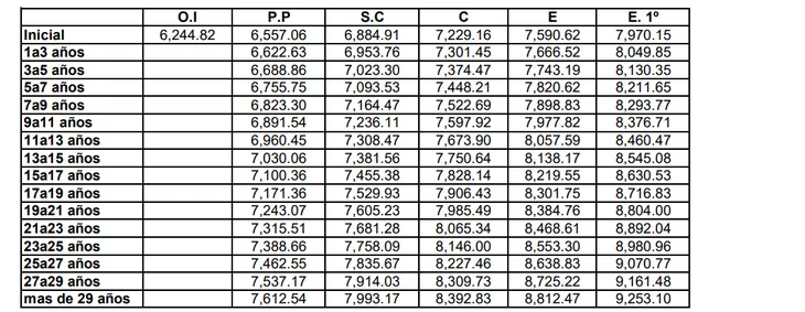 Dentro de las escalas actuales, el personal mensualizado del Grupo A (administrativo) en cuarta categoría percibe $1.110.638,90, mientras que un técnico del Grupo B en sexta categoría alcanza los $1.216.077,13. Por su parte, un auxiliar del Grupo C en tercera categoría registra un salario de $945.480,67.