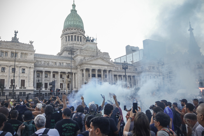 El desmedido operativo de Bullrih resultó insuficiente para desmovilizar a las organizaciones y a los gremios, que se sumaron a la tradicional marcha de los miércoles. Se cantó contra Milei, el FMI y el ajuste. «Bullrich eligió mal al enemigo porque nosotros no tenemos nada que perder», se escuchó.