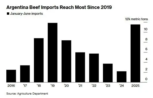 «Las importaciones totales de carne de res de Argentina en lo que va del año se encuentran en su nivel más alto desde 2019», según una nota publicada por el medio financiero Bloomberg.