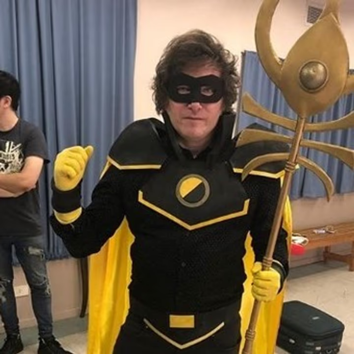 Ya en ese momento el jefe de Estado había hecho cosplay como Ancap (anarcocapitalista), un superhéroe que usa un antifaz, malla negra, capa amarilla y un cetro dorado. Se trata de un personaje de Liberland, «una tierra de siete kilómetros cuadrados entre Serbia y Croacia donde no se pagan impuestos, se defienden las libertades individuales, se cree en el individuo y no hay lugar para colectivistas hijos de puta que nos quieren cagar la vida».