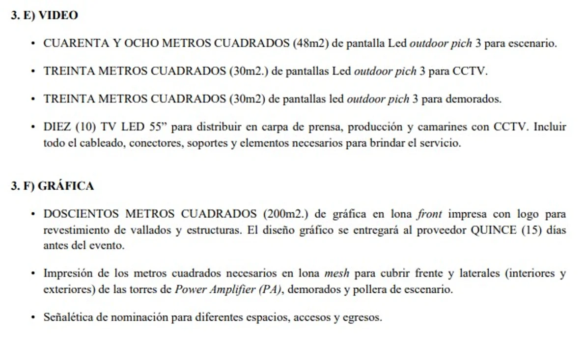 Pero aquí lo más impactante. Al pie de la orden de compra figura un apartado denominado “solicitud de provisión”. Allí aparecen, uno por uno, los eventos que fueron costeados hasta el momento con el presupuesto de $600 millones. Casualmente en la contratación anterior estos detalles no eran visibles: en aquella ocasión, contra lo que indica el reglamento, la orden de compra no se hizo pública, y por lo tanto era imposible conocer en qué se gastó el dinero. Esta vez, por lo menos hasta nuevo aviso, el escenario es distinto.