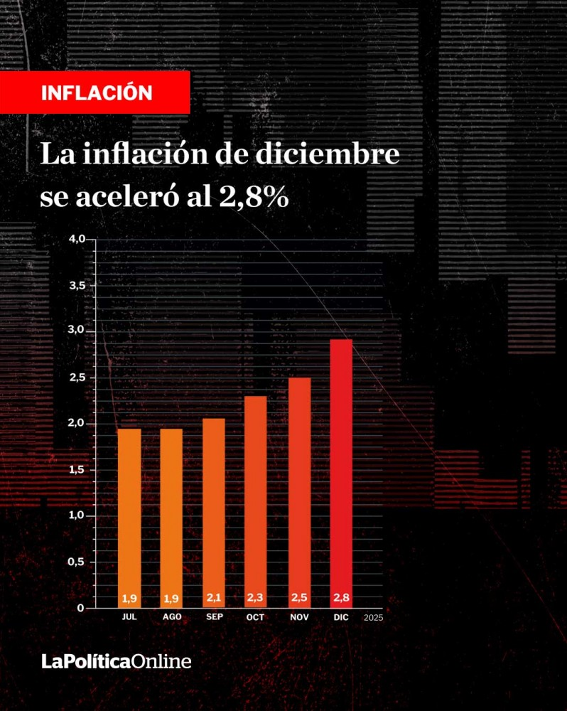 El índice oficial subió así por quinto mes consecutivo y confirma una tendencia alcista desde mayo, cuando dio 1,5%, lo que deja un arrastre estadístico importante para este año. Las consultoras privadas que pronosticaban un 20% de inflación para 2026 ya hablan de un 30%, el triple de lo que pautaron Milei y Caputo en el Presupuesto que sancionó el Congreso.