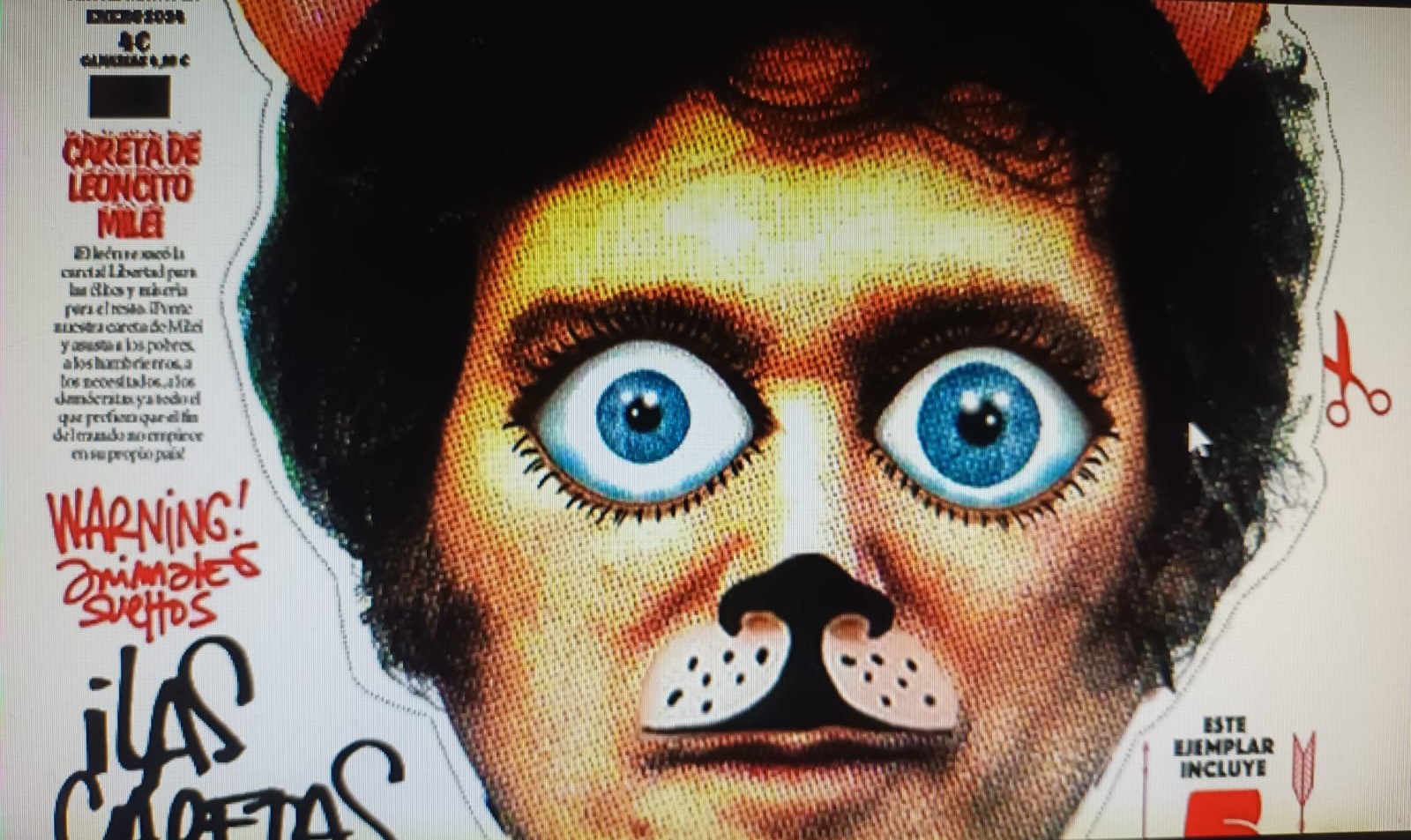 En sintonía con Milei, la revista advierte en otro apartado de la tapa: «Warning, animales sueltos» e invitan al lector a ponerse «Las caretas de la Liberta´», entre las que se encuentran la de la presidenta de la comunidad de Madrid, Isabel Díaz Ayuso, una de las referentes de la extrema derecha española, también retocada digitalmente.