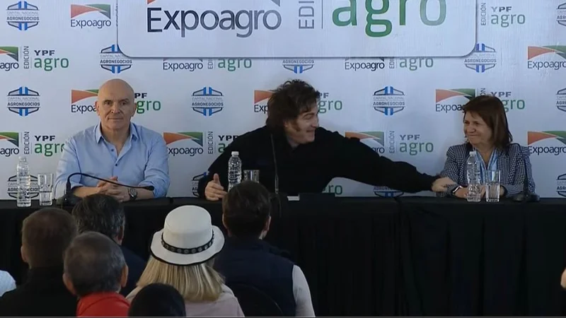 Por primera vez luego del escándalo cripto $LIBRA, de la catástrofe climática de Bahía Blanca y de la represión más cruenta desde el 2001 con un saldo de casi 700 heridos, el presidente Javier Milei dio un discurso público esta mañana en el cierre de ExpoAgro 2025. El mandatario habló ante un sector rural que le solicita un aumento en el tipo de cambio y una quita de retenciones para mejorar sus beneficios por cada exportable. Su disertación fue horas antes de que se conozca la inflación de febrero, presionada por la suba del precio de la carne. Milei estuvo acompañado por el diputado libertario José Luis Espert y la ministra de Seguridad, Patricia Bullrich.