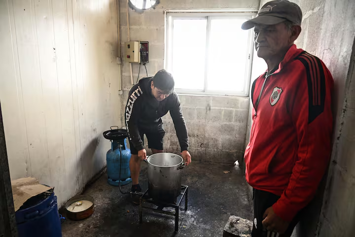 Ricardo Herreras es el papá de Kevin y hace 18 años que trabaja en el lugar. Toda la familia se fue a vivir al frigorífico, también su esposa, Mariana, y su hija, Luna, cuyo novio es operario del frigorífico. Para Ricardo, “el trabajo es lo que saca adelante a la familia”. “Mi papá, Francisco, nos crió con esta empresa y yo lo hice con la mía”, cuenta. “Muchos compañeros dicen que no vienen porque la familia los ayuda, pero nosotros ¿a quién le vamos a pedir? Si toda nuestra familia está acá”, relata. Como pasa en varias de las 22.000 empresas que cerraron en los dos años de gobierno libertario, la fábrica es más que un lugar de trabajo, es parte de la identidad. Hay familias, barrios, pueblos que se constituyeron en torno a ese núcleo productivo.
