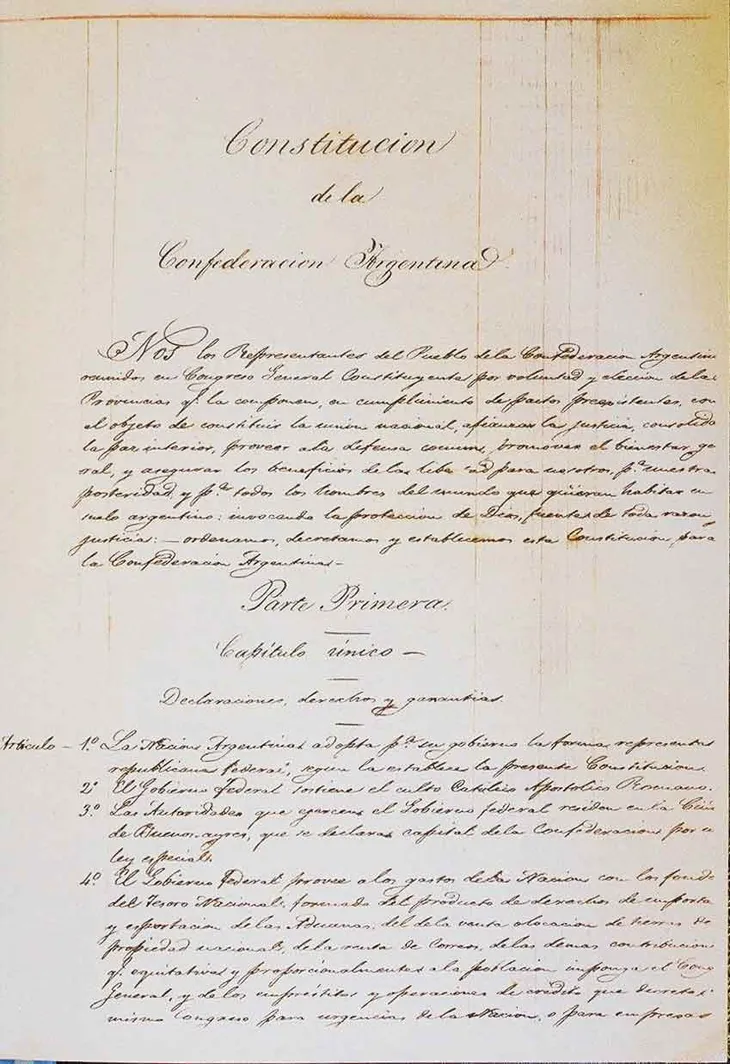 La Argentina fue parida el día que se sancionó la Constitución Nacional el 1 de mayo de 1856. En 1830 Hipólito Yrigoyen prefirió conmemorar ese día declarándolo Feriado por el Dia del Trabajo, relegando la Constitución al olvido. El 4 de diciembre de 2003 el Congreso sancionó la ley 2.8363 estableciendo el 1 de mayo, como el Dia de la Constitución Nacional (pero no un feriado). Muchos hablan sobre la constitución, pocos la conocen y menos son los que la respetan.