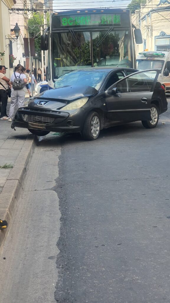 El impacto fue tan fuerte que el automóvil fue arrastrado unos 20 metros por parte de la unidad de transporte de pasajeros que provenía,( con sentido norte-sur), por calle Catamarca, hasta que finalmente se frenó.
