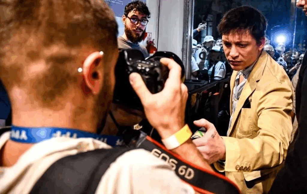 Santiago Caputo en el episodio con el fotógrafo de Tiempo Argentino.