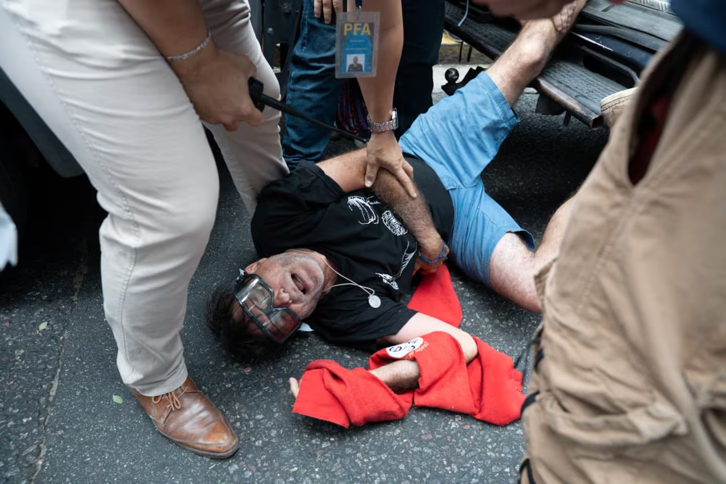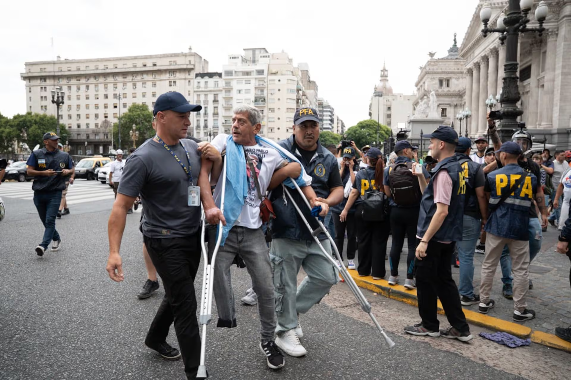 Además de los jubilados, las personas con discapacidad también fueron blanco de la represión, arrestos incluidos. Y también hubo gases contra trabajadores de prensa, que horas antes habían reclamado en contra de la derogación del Estatuto del Periodista, que está incluido en la reforma laboral.
